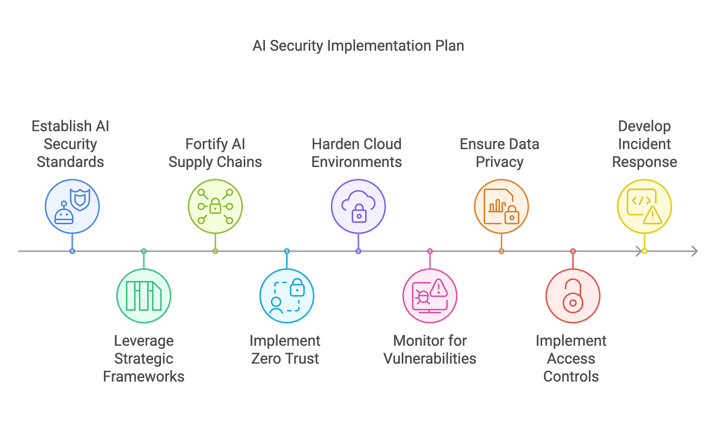 - AI-Specific Access Controls and Zero Trust Implementation: Implement robust AI software and supply chain security practices.